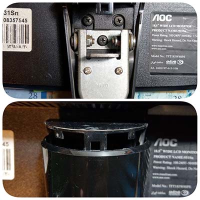 مراحل تعمیر را با شما مرور میکنیم ، ابتدا باید پایه دستگاه را خارج کنیم ( منظورم کفی پایه نیست ) رابط پایه با یک پلاستیک قاب پشت پوشیده شده است ، آن را کمی پایین بکشید تا پیچ ها نمایان شوند ، سه عدد پیچ است ، آنها را باز کنید و پایه را بصورت کشویی عقب بکشید ، سپس باید قاب جلو و عقب را با کمک اسپچول به آرامی و بدون شکستن خارهای نگه دارنده قاب جلو و عقب باز کنید . بعد از باز کردن و جدا کردن قاب ، سیم لامپ های CCFL مهتابی فلورسنت بکلایت را جدا نمایید ، در مانیتور 931SN فقط از دو عدد لامپ بکلایت استفاده شده است.