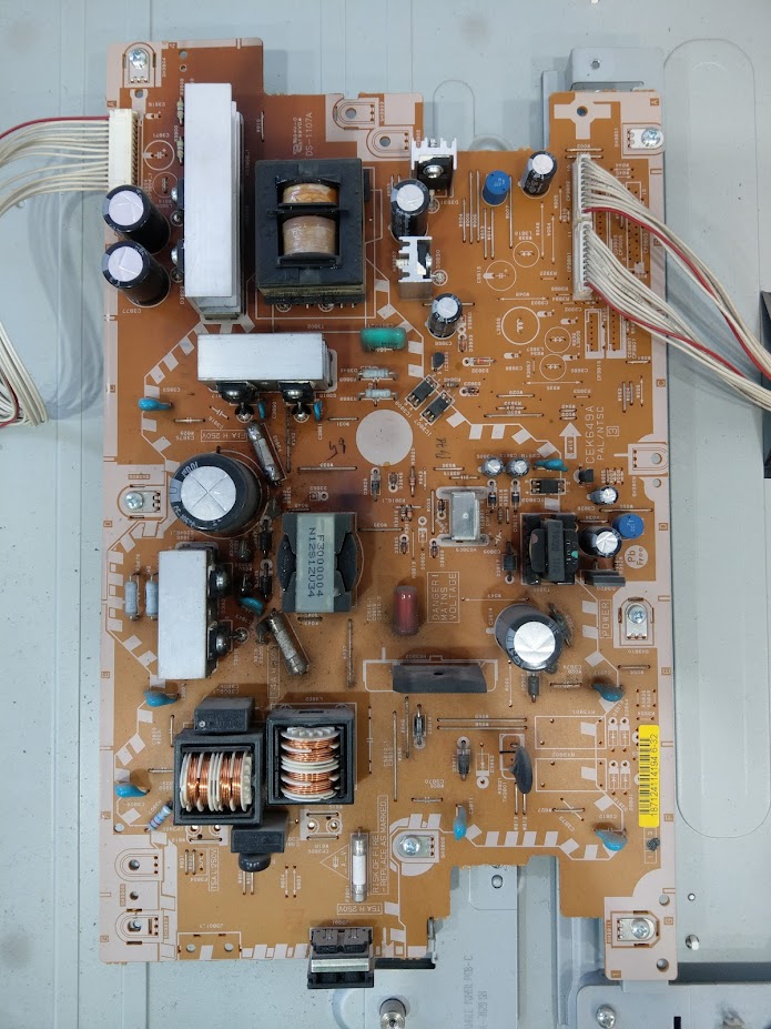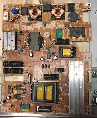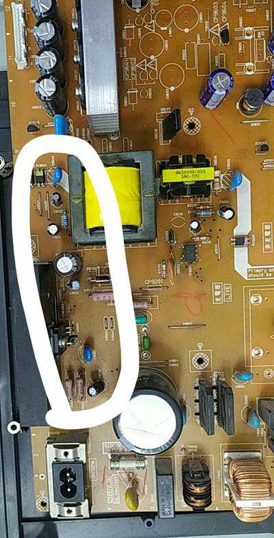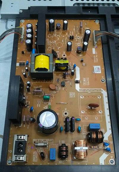در تصویر زیر برد تغذیه تلویزیون LT42G20 را مشاهده می فرمایید: در این برد به دلیل افزایش ولتاژ برق شهری تا 260 ولت قطعات اولیه سوخته است.