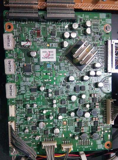 تصویر زیر برد پاور جی وی سی JVC مدل LT-42E10 را که در دو مورد خرابی این تلویزیون به دفتر تعمیرات غرب تهران منتقل شده است را قرار دادیم.قیمت برد پاور این مدل حدود 800 هزار تومان است اما در اکثر مواقع با تعمیرات تخصصی میتوان پاور را تعمیر کرد.در تصویر زیر بخش معیوب برد POWER تلویزیون LT-42E10 را برای شما مشخص کردیم که در بخش ثانویه برد تغذیه میباشد.تصویر زیر مین برد LT-42E10 نشان میدهد قیمت مین برد این مدل حدود *** هزار تومان میباشد.
