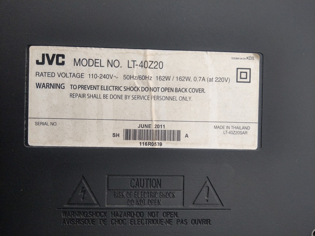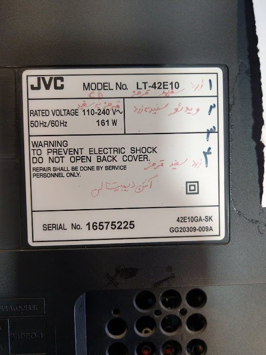 یکی از مدلهای موجود در ایران از برند jvc تلویزیون 42 اینچ مدل LT-42G20 میباشد . خرابی این مدل بیشتر به دلیل نوسانات برق شهری بوجود میاید و تعمیرات ان بصورت تخصصی در این دفتر انجام می شود . تعمیرات بردهای مین و پاور این تلویزیون با ضمانت و گارانتی میباشد و تمامی قطعات اصلی و مطابق با خود کارخانه و اصل ژاپن است.