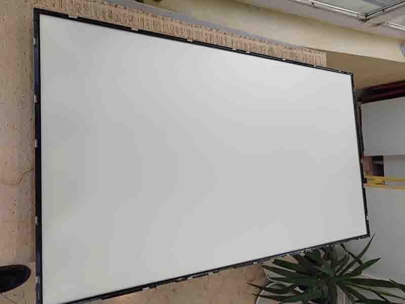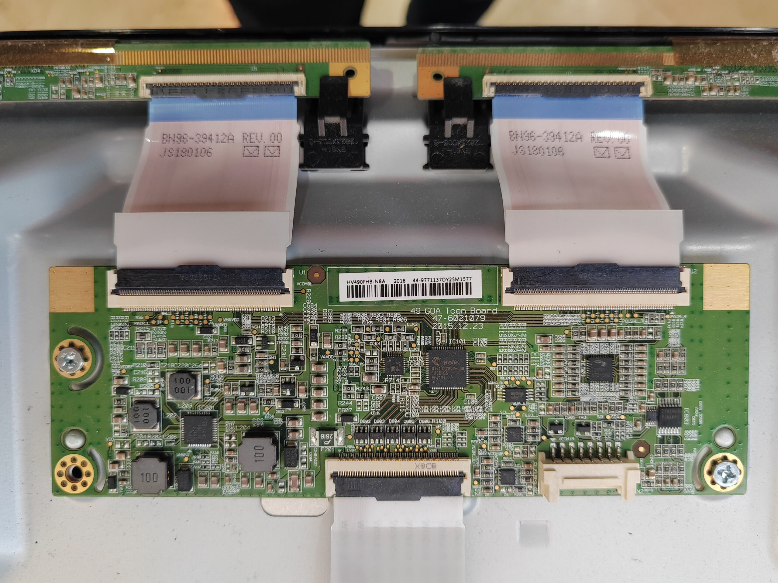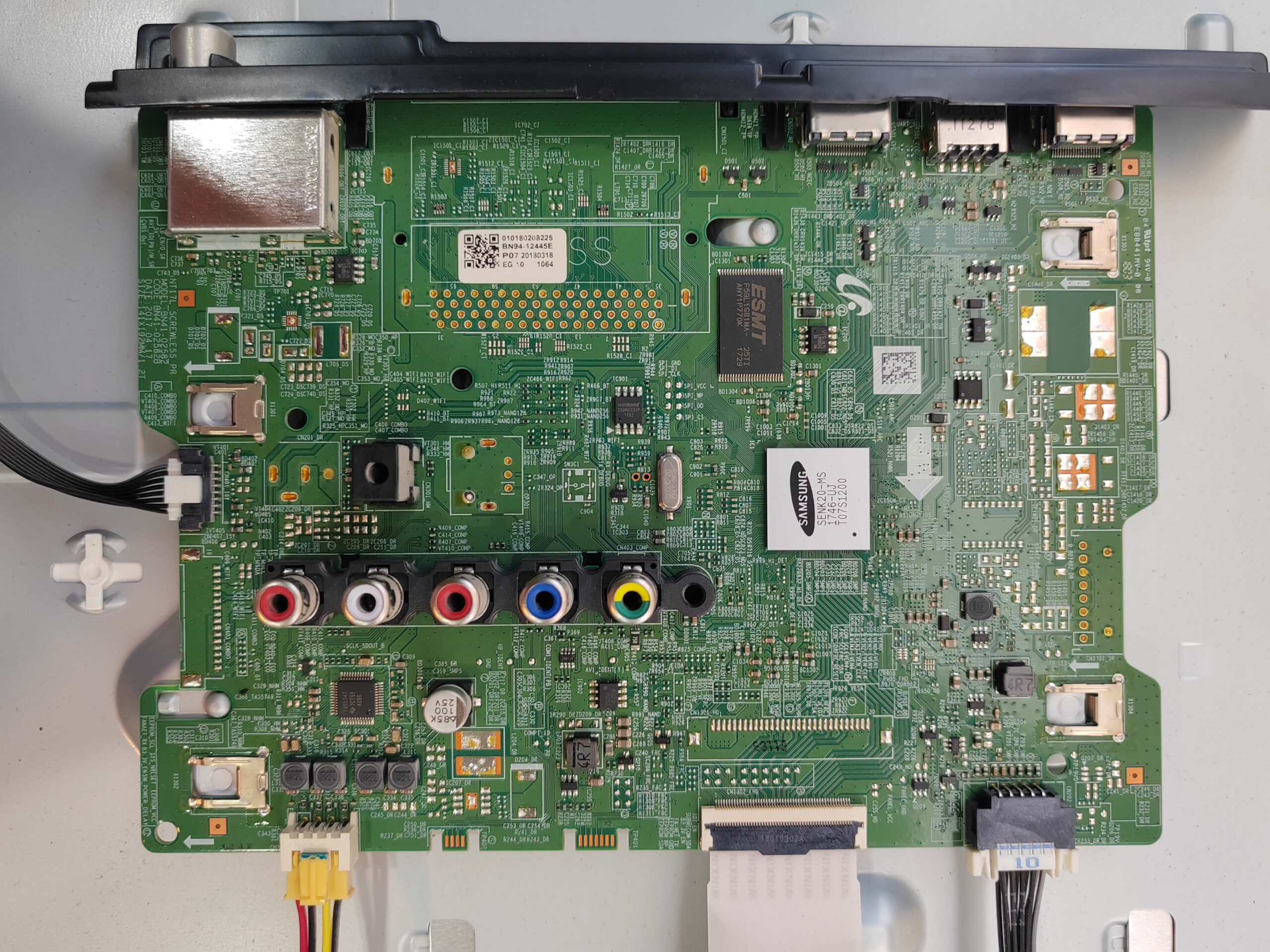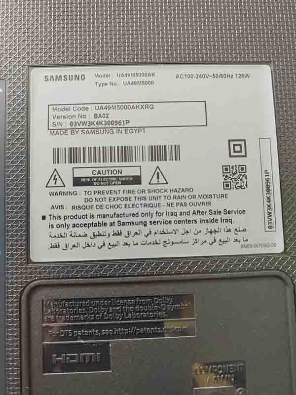 یک روز قبل از شروع جنگ ایران و اسرائیل یکی از دوستان و مغازه داران همسایه دفتر نمایندگی سام خودمان ، به دفتر ما مراجعه کرد و گفت تلویزیون سامسونگی که چندین سال پیش خودش از شهر بانه خریداری کرده بوده امروز روشن میشه اما دیگر تصویر ندارد . برای تست اولیه به مغازه ایشان رفتم که کارش تعمیرات دستگاه کارت خوان است . تست بکلایت رو با کمک یک چراغ قوه گرفتم و دیدم لوگو دیده شد و پیام NO SIGNAL هم دیده می شود . تلویزیون رو به دفتر منتقل کردم تا بتوانم روی میز مناسب کار در داخل دفتر تلویزیون UA49M5000AKXRQ را تعمیر کنم . این دستگاه یک مدل عالی و خاص است . در طراحی این مدل شما می توانید بدون هیچ ابزار خاصی و فقط با دست خالی این دستگاه را کامل باز و بسته کنید . تنها قسمتی که به یک آچار پیچگوشتی 4 سو نیاز دارید ، برای باز کردن دو عدد پایه های رومیزی است . بعدش دستگاه رو روی میز از سمت شیشه جلویی ، می خوابانیم ، قاب این مدل تماما با خار است ، باید با کمک دست و خیلی ظریف و کم کم خار ها باز شود ،