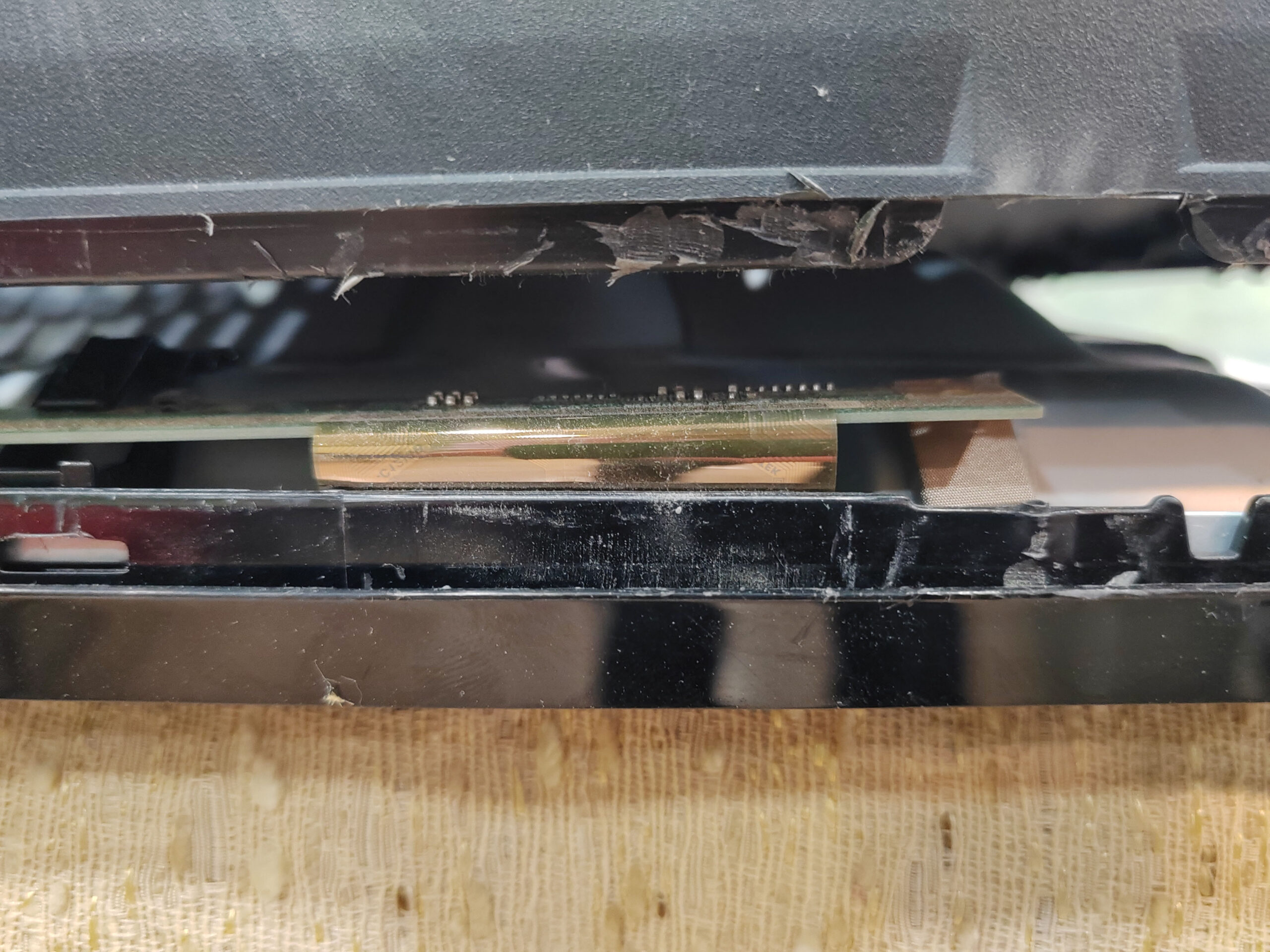 آدرس برد که از قبل باید آزاده شده باشد تا بتوانید لیکوئید را بدون گیر کردن آدرس برد بردارید. کوچکترین تاب و شکم دادن شیشه باعث شکستن می شود این کار باید با مهارت و تجربه انجام شود و اصلا کار کاربر های خانگی نیست . برداشتن بدون شکستن لیکوئید نیاز به تجربه چندین ساله دارد . لیکوئید را به محل امن انتقال دهید . حالا نوبت برداشتن پلاستیک های اطرف دیفیوزر است ، اونها رو بردارید بدون اینکه بشکنند ، دیفیوزر ها رو بدون این که ترتیب لایه ها بهم بریزد یکجا و در یک سمت بردارید و به محل تمیزی منتقل کنید . در این مرحله شما به بکلایت دسترسی پیدا کردید ، البته که باید رفلکتور را ابتدا بردارید و مراقب باشید پاره نشود چون جنس کاغذ رفلکتور بسیار حساس است . دقت کنید برای برداشتن رفلکتور ابتدا باید خار های چرخشی که روی شاسی است را بردارید ، کافی است آنها را 45 درجه در جهت عقربه های ساعت بچرخوانید تا رها شود . وقتی همه خارها رو برداشتید میتوانید رفلکتور را بلند کنید .