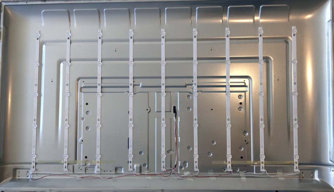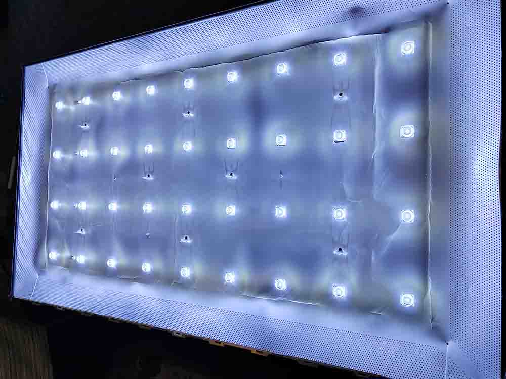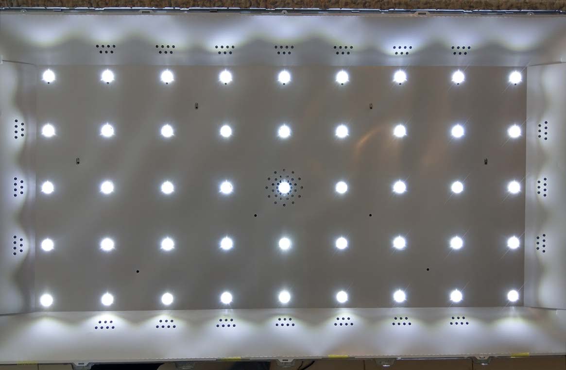این تصویر بکلایت روشن 50XCU635 را نشان میدهد . این دستگاه از 4 شاخه بکلایت که روی هر کدام 9 عدد LED نصب شده است تشکیل شده است . بکلایت فابریک باشد بدون نیاز به اصلاحیه بکلایت یا سیم کشی اضافی قابل نصب است .