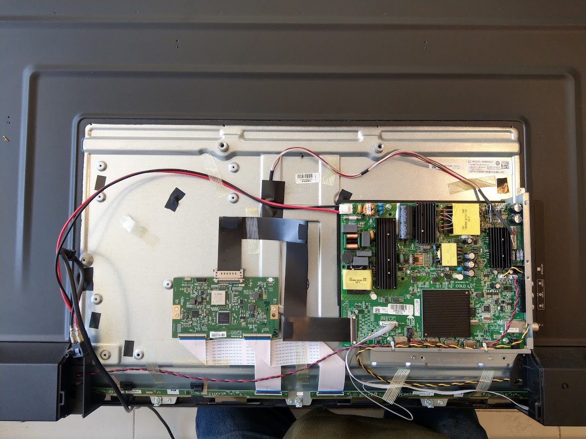 پیرو تماس تلفنی دوست عزیزی از حسن آباد فشافویه و توضیح ایشان از بابت خرابی عجیبی که تلویزیون LED برند XVISION به مدل 50XCU635 با این توصیف که تلویزیون رو روشن می کنند بعد از اینکه حدود یک ساعتی کار کند تصویر می رود اما صدا باقی می ماند . اگر تلویزیون رو خاموش کنند و مثلا نیم ساعت صبر کنند تا خنک شود و مجدد روشن کنند ، دوباره تلویزیون به کار خودش ادامه میده ولی این بار قفاصله روشن موندن کمتر میشه و مثلا بعد 45 دقیقه دوبره تصویر قطع میشه . متاسفانه بدللی اطلاعات کم مشتری برای گرفتن تست بکلایت و نا مشخص بودن اینکه وقتی تصویر می رود آیا بکلایت خاموش می شود یا روشن است ، برای همین ما نتوانستیم بصورت مستقیم و قطع به یقین ایراد را به مین برد MAIN BOARD یا بکلایت BACKLIGH ارتباط دهیم . با مشتری صحبت شد که ماشین مخصوص شرکت ( وَن ) اعزام شود جهت جابجایی ، ولی ایشانن گفتند دفتر ما در مسیر ایشان هست و خودشان دستگاه رو به شعبه نمایندگی ما می آورند . آدرس و لوکیشن رو به ایشان از طریق تلگرام ارسال کردیم ( جهت مشاهده آدرس و لوکیشن شعبه اصلی اینجا کلیک کنید ). بعد از اینکه دستگاه رسید خیلی سریع متوجه یک نکته شدیم که عجیب بود چطور به چشم مشتری نیامد و تلفنی این مورد را به ما نگفت ، وگرنه خدمات در منزل خودشان داده می شود . نیمه پایین تصویر تاریک بود ، البته خیلی دیده نمیشد اما در پس زمینه های روشن و سفید مشخص بود که نیمه پایین تاریک تر از نیمه بالایی است .