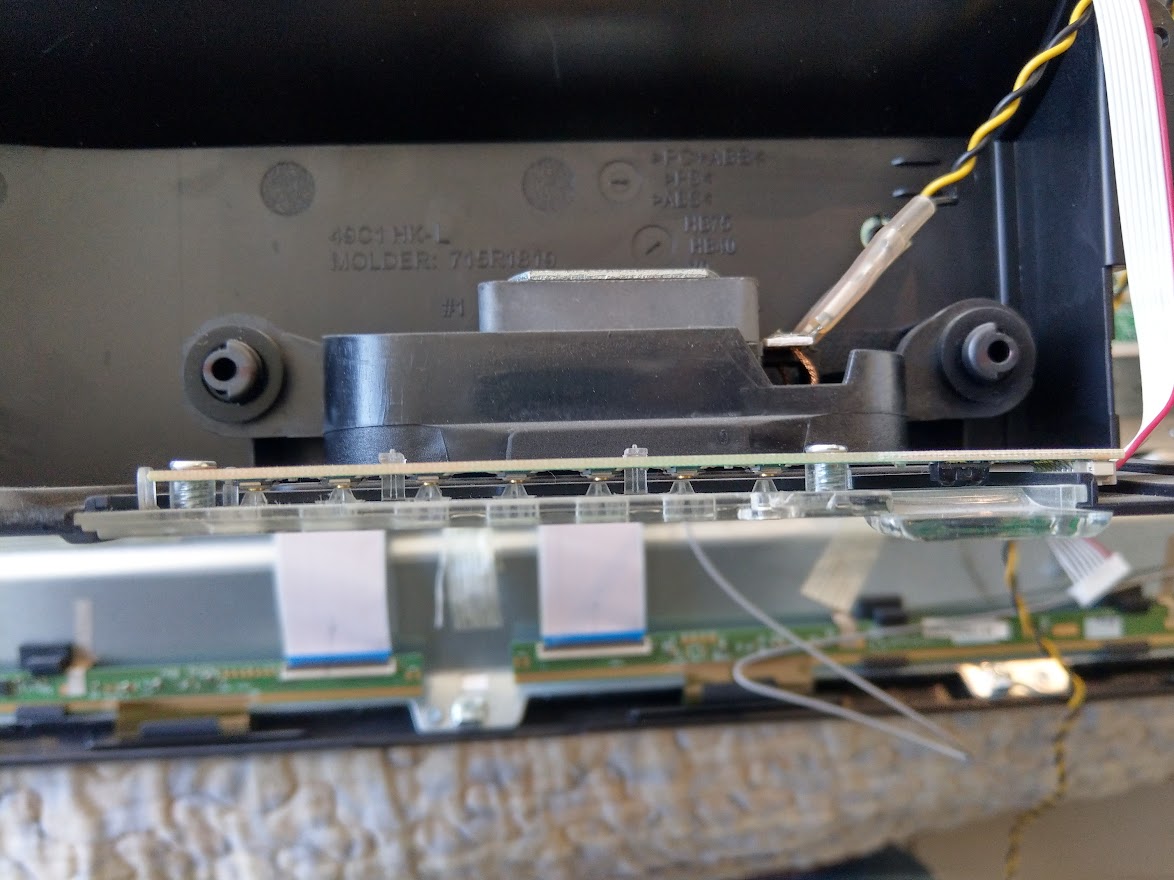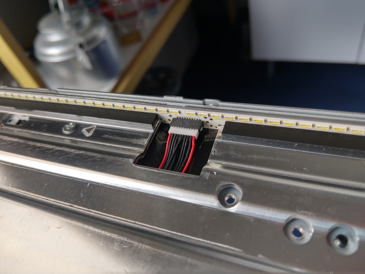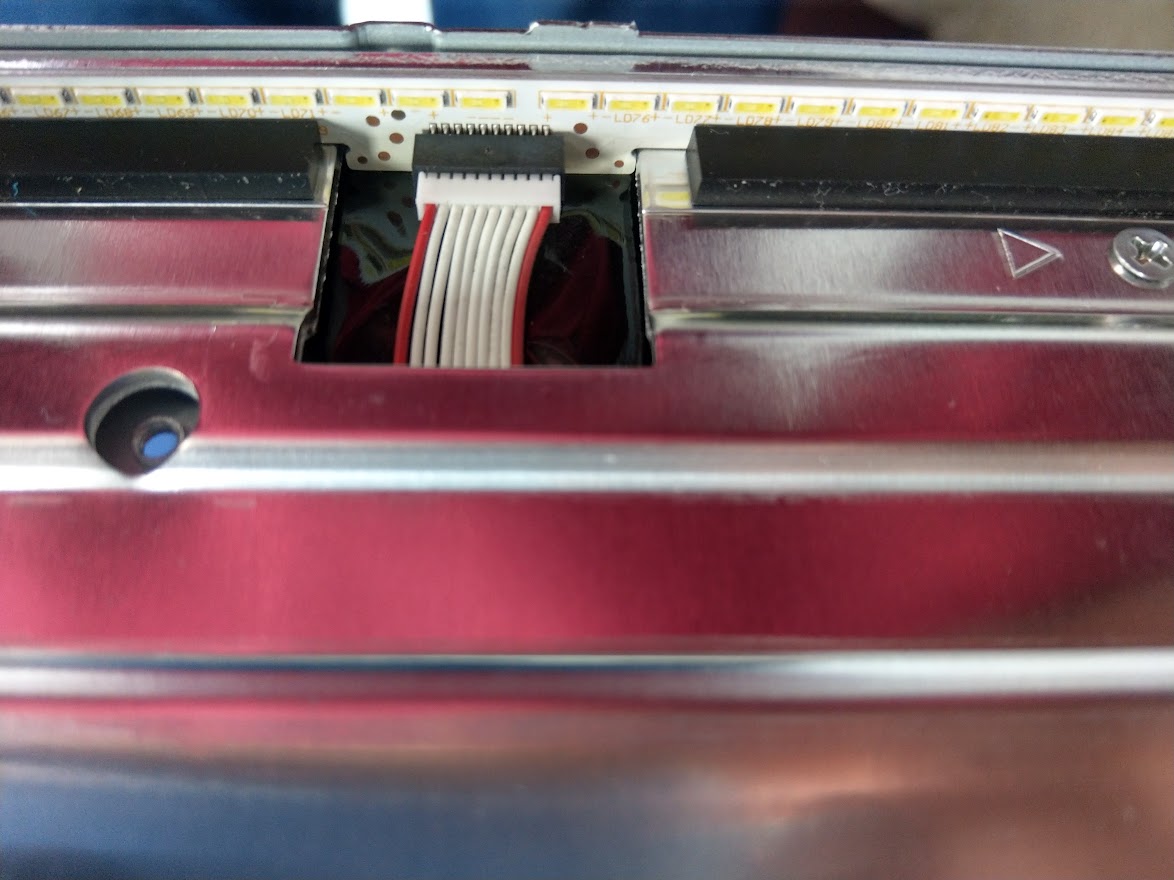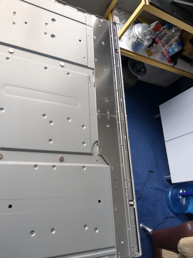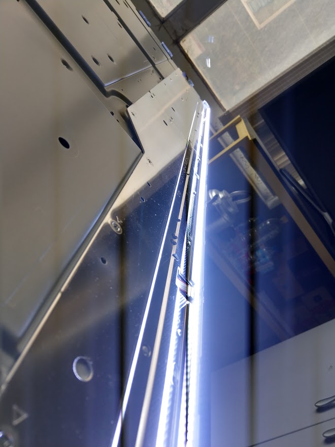 بعد از اینکه پنل و دیفیوزر ها رو برداشتیم ، با تصویر 7 روبرو می شویم ، نمایی از بکلایت ها که اول باید رفلکتور را که بصورت چسبی است باز کنیم و بعد می توانیم بکلایت دسترسی داشته باشیم . هولدرها بصورت پیچی است و از اینکه دیفیوزر شکم بدهد و به لامپ ها بچسبد یا موج در تصویر پیش نیاد استفاده می شود .