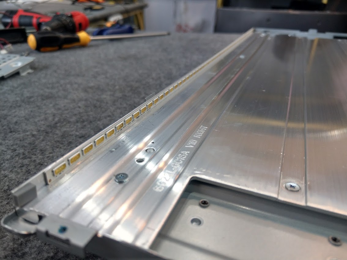 بعد از تماس تلفنی یکی از بزرگترین و با سابقه ترین و حرفه ای ترین تعمیرکاران شاخه لپتاپ و کامپیوتر در غرب تهران ( مرکز کامپیوتر و موبایل یاران ) آقای مهندس مجیدی ، که از دوستان قدیمی بنده می باشد ، مطلع شدیم دستگاه تلویزیون LED برادر ایشان از برند XVISION و مدل LE-42KD30 می باشد و ظاهرا با خرابی بکلایت روبرو شده است ، خرابی بکلایت در سری تلویزیون های KD که در سه سری 20 , 30 , 40 تولید شده است چون از نوع لبه ای EDGE است و برای هر 10 تا LED یک مسیر ولتاژی وجود دارد ( یک شاخه بکلایت از پهلو نصب می شود که هر بخش سیم شکی موازی دارد و در صورت سوختن یک LED در یک پارت تمام شاخه خاموش نمی شود و فقط بخشی از تصویر تاریک می شود ) این تاریکی می تواند نیمه بالا یا پایی یا وسط باشد که کاملا مطابق با LED های بکلایت سوخته است. بعد از انجام هماهنگی های لازم جهت انتقال تلویزیون به دفتر تعمیرات خیابان امام خمینی ، جمهوری ، دستگاه در واحد تعمیرات باز و جهت تعویض بکلایت آماده شد . پروسه کار را با هم مرور می کنیم . ابتدا بعد از باز کردن قاب پشت شروع به جدا کردن اتصالات اسپیکرها SPEAKER ها و باز کردن پیچ های نگه دارنده فریم جلو و رها کردن سوکت های چشمی ریموت کنترل از راه دور و کنترل پنل ( کیلدهای کنترلی روی پهلوی چپ دستگاه ) کردیم . بعد از اینکه توانستیم فریم جلو را برداریم پنل را چرخانده و شروع به باز کردن پیچ های نگه دارنده فریم فلزی خود پنل کردیم که در هر ضلع 3 عدد پیچ دارد . فریم فلزی را برداشته و کابل های فلت بین آدرس برد و برد تیکان T-CON را جدا کردیم . لیکوئید را به میز دیگر امن منتقل کردیم و لایه های دیفیوزر و رفلکتور را برداشتیم و بکلایت را که به پهلوی شاسی ، و روی یک شاسی فلزی که عمل هیت سینک را جهت خنک ماندن بکلایت و دفع حرارت تولیدی لامپ های LED بکلایت داریم را جدا کرده و ساخه بکلایت جایگزین را با چسب سیلیکون نواری روی شاسی نصب کردیم و تمامی مراحل باز کردن را معکوس جهت جمع کردن دستگاه انجام دادیم . جهت آشنایی بیشتر شما بکلایت قبلی دستگاه با کمک دستگاه تستر بکلایت بخش بخش روشن شد تا شما درک بهتری از خرابی بکلایت داشته باشید . در جدول زیر تصاویری از پروسه تعویض و قسمت های اصلی دستگاه مانند برد تغذیه پاور POWER BOARD LE-42KD30 یا برد اصلی مین MAIN BOARD LE-42KD30 و برد تیکان T-CON و LED DRIVER و سایر اتصالات را مشاهده می کنید که جهت خرید یا فروش آنها و استعلام قیمت میتوانید با ما در تماس باشید. جهت نمایش تصاویر در سایز بزرگتر روی آنها کلیک نمایید. تصویری که در بالای این متن آمده بود در ابتدای کار و زمانی که بکلایت خراب بود و فقط قسمت بالا روشن می ماند گرفته شده است و بعد از جدول زیر عکس های بعد از تعمیر قرار داده شده است.