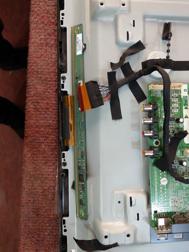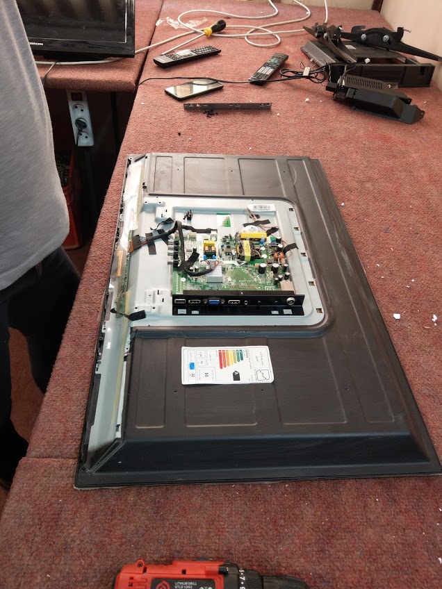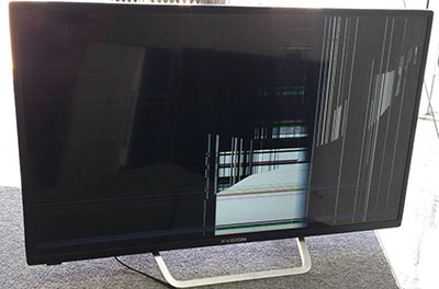 در تصویر زیر یک دستگاه 32XS420 کهمتاسفانه بر اثر ضربه صفحه نمایش لیکوئید آن شکسته است را به نمایش گذاشتیم ، متاسفانه اگرصفحه نمایش شکسته باشد دیگر قابل تعمیر نیست
