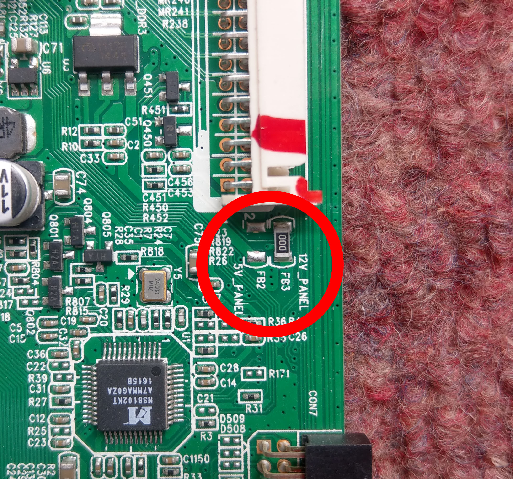 دقت نمایید در صورت که تصمیم به تعویض مین برد گرفتید حتما حتما به پین ولتاژ پنل دقت نمایید ، 43XS412 از پنل 12 ولتی استفاده می کند . در جدول زیر میتوانید تصاویر مربوط به پین و پردازنده را مشاهده نمایید.