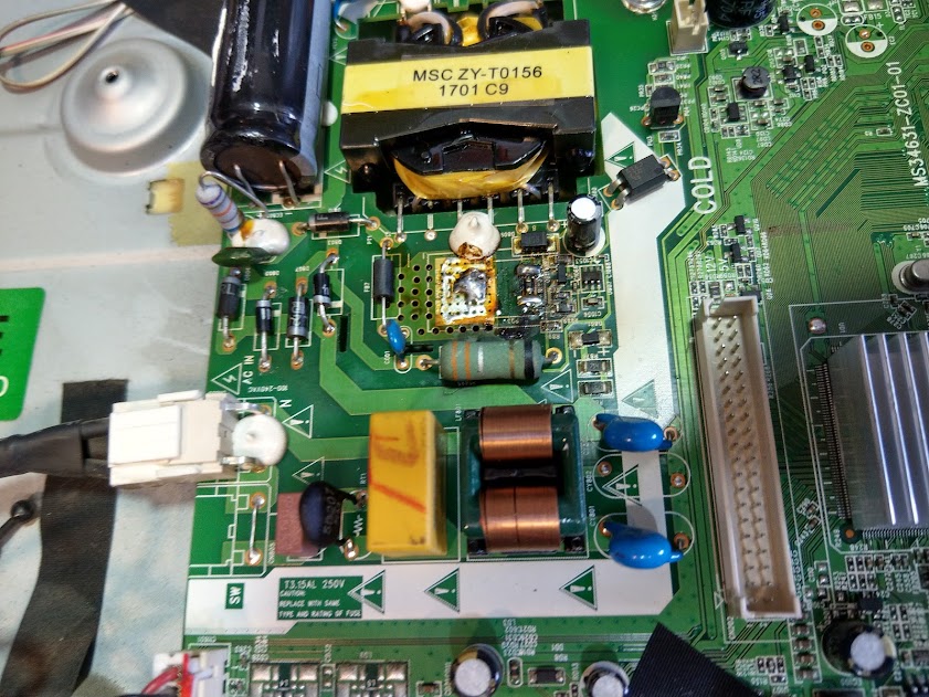 با تماس تلفنی مشتری محترمی از محدوده شهر قدس ( غرب تهران ) سمت میدان امام حسین و خیابان امام ، بعد از خیابان آزادی ، مشتری محترمی توضیح دادند یک دستگاه تلویزیون ایکس ویژن به مدل 32XS422 دارند که شب قبل با قطع و وصل شدن مکرر برق شهری بدلیل کابل دزدی ، دیگر روشن نمی شود و حتی چراغ استندبای هم به نور قرمز خاموش است . البته ایشان در ادامه شرح دادن که اول با نمایندگی مادیران / ایکس ویژن در شهرقدس تماس گرفتند ولی این نمایندگی گفته دستگاه باید منتقل شود به دفتر خدمات شهرقدس مادیران و امکان تعمیر و رفع ایراد در منزل خود مشتری نیست ، از همین رو ایشان با جستجوی مجدد در گوگل با ما آشنا شدند . برای رفع ایراد دستگاه ایشان تکنسین بخش فنی با تمامی ابزارهای لازم و قطعات یدکی که از روی نقشه شماتیک برد تغذیه پاور 32XS422 مشخص بود به منزل ایشان رفتند و با تعمیر بخش اولیه HOT برد پاور POWER BOARD 32XS422 و برسی اجمالی برد اصلی مین MAIN BOARD 32XS422 ایراد را برطرف و با گرفتن تست های لازم و جریان کشی مناسب از برد تغذیه ، اطمینان از صحت تعمیر را کسب و با کمترین هزینه و دادن فاکتور رسمی و ضمانت تعمیر تا 6 ماه به ایشان ، دستگاه تقدیم گردید . شما در جدول زیر می توانید تصایوری از بخش پاور و مین این دستگاه 32XS422 مشاهده نمایید . جهت نمایش تصاویر در سایز بزرگتر روی آنها کلیک نمایید.