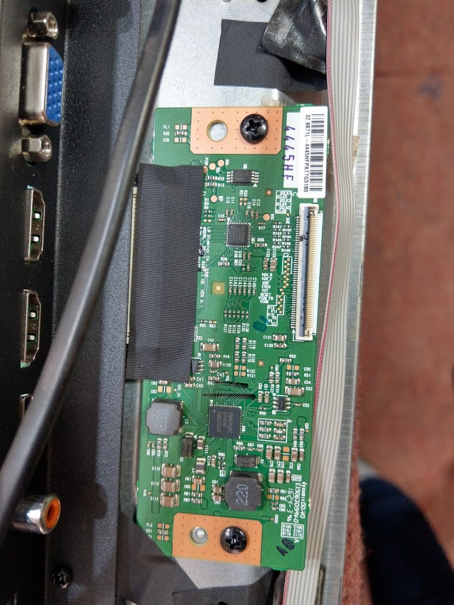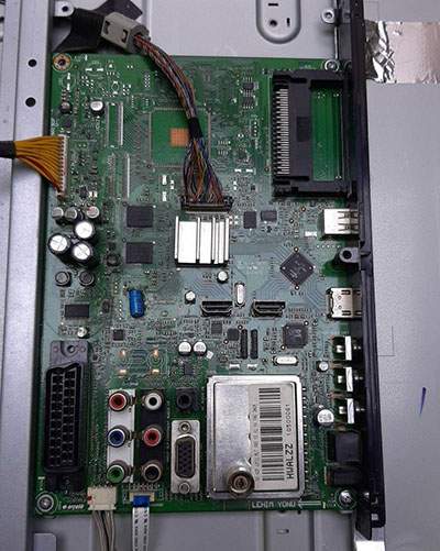 تصویر زیر را از مین برد تلویزیون دوستی که بدلیل خرابی و عدم وجود تصویر تلویزیون 49XK550 خود را به دفتر نمایندگی شهریار آورده بود ، گرفته شده است ، ایراد این تلویزیون این بود که در هیچورودی تصویر نداشت ، لوگو هم در زمان روشن ON شدن تلویزیون دیده نمی شود ، بکلایت روشن بود و پنل سرمه ای بود ( نور وچود داشت ) ، ابتدا به ساکن شک به برد تیکان T-CON داشتیم که با تعویض آن ، ایراد همچنان وجود داشت ، بنا براین با کمک برد مین اصلی تست ، تواسنتیم ایراد را به مین برد ارتباط بدهیم. خوشبختانه با پروگرام مجدد برنامه TV مشکل حل گردید.