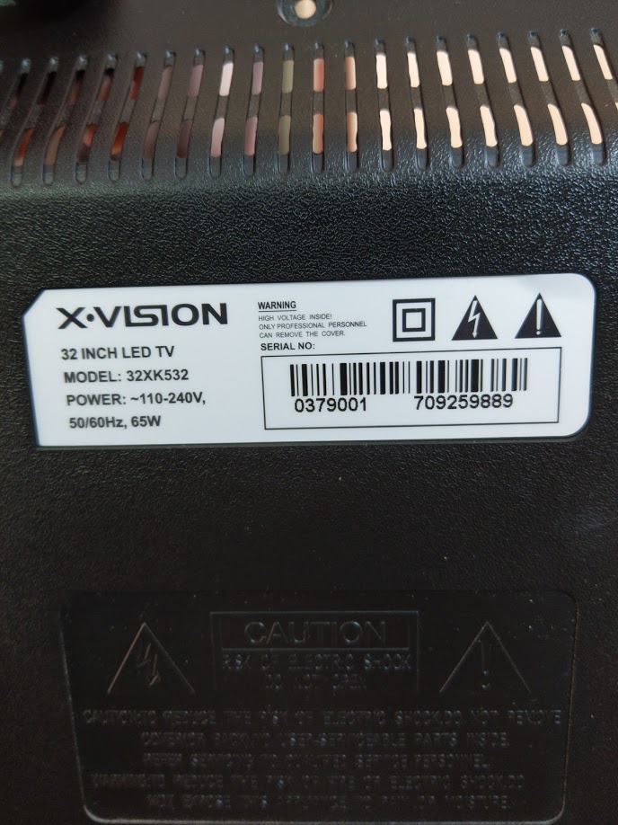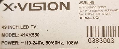 تصویر زیر از لیبل مشخصات پشت تلویزیون XVISION 43XK560 گرفته شده است .