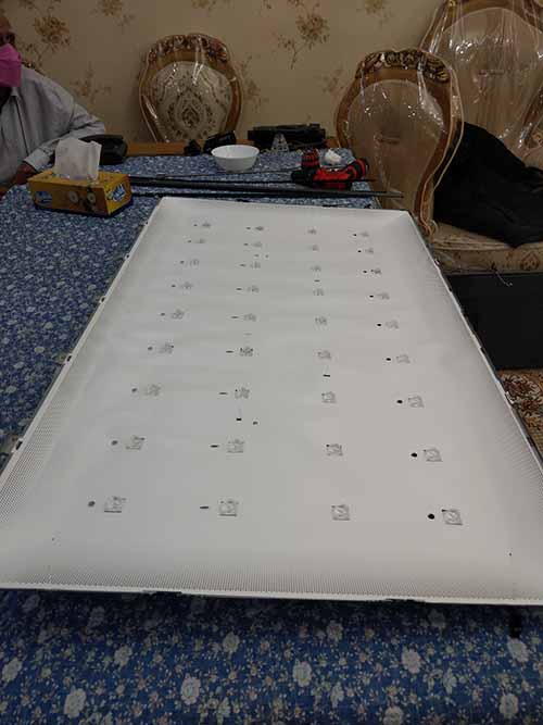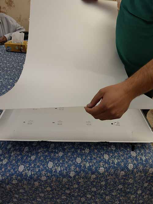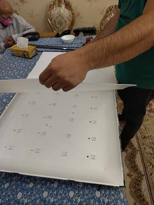 بعد از تماس تلفنی خانمی با دفتر تعمیرات ایکس ویژن ، از بابت یک مورد خراب شدن تلویزیون LED سایز 55 اینچ برند TCL از محصولات تولید شده و ضمانت شده توسط شرکت شهاب ولی متاسفانه زمان اعتبار گارانتی شرکت شهاب برای تلویزیون تی سی ال 55P1S ایشان به پایان رسیده بود و ایشان با مشکل و خرابی بکلایت 55P1S به این شرح که تلویزیون روشن می شود اما تصویر دیده نمی شود و در اولین مواجهه با این مشکل صدای برنامه های تلویزیونی نیز شنیده می شود اما بعد از اینکه کلیدهای روی ریموت کنترل را چندین بار فشار دادند دیگر صدا نیز پخش نمی شود . بعد اغز برسی هزینه ها و استعلام قیمت قطعه بکلایت از شرکت و هماهنگی با مشتری و تایید ایشان به منزل مشتری در شهر پردیس فاز 5 مزاجعه کردیم ، سمت خیابان های نخلستان نزدیک کارواش امید بودند . متاسفانه در ابتدا میز مناسبی برای شروع کار موجود نبود برای همین دو عدد میز عسلی از مبلمان را به هم چسبانده و کارتن تلویزیون را روی آن قرارا دادیم و با کمک پتوی ذخیم روی آن را نرم و مناسب کردیم . بعد از باز کردن قاب و فریم دو ردستگاه و برداشتن لیکوئید و انتقال به محلی امن و مناسب و شروع به جدا کردن رفلکتور یا همان انعکاس دهنده Reflector که در محصولات شهاب متاسفانه با چسب بسیار سختی کار شده است و جدا کرده Reflector از شاسی فلزی جهت دسترسی به بکلایت باعث پاره شدن و زخمی شدن Reflector می شود . ولی به هر حال با صبر و حوصله و صرف زمان بیشتری این کار با کیفیت انجام شد تا به سیستم بکلایت دسترسی پیدا کردیم و بعد از تعویض و استفاده از چسب سیلیکون تصویر جهت بهبود انتقال حرارت و گرما تولیدی از بکلایت ها به شاسی فلزی استفاده می شود. در مدل 55P1S از 9 شاخه بکلایت که روی هر شاخه 4 عدد LED منشور دار نصب است استفاده شده است و نوع نصب آنها بصورت عمودی و سیستم سیم کشی برق ورودی آنها بصورت سری است که همین سری بودن باعث می شود در صورتی که تعدادی از LED های بکلایت 55P1S بسوزد کلا صفحه تاریم شود و روشن نشود . در مدلهایی که بملایت بصورت موازی سیم کشی و تامین برق می شود سوختن و خرابی تعدادی از LED های بکلایت فقط باعث تاریک شدن موضعی و محیطی می شود. در جدول زیر تصاویری از پروسه تعویض بکلایت در پردیس برای دستگاه تی سی ال 55P1S قرار داده شده است تا شما آشنایی بیشتری پیدا کنید و همکارهایی که به دنبال خرید یا فروش و یا تعمیر برد تغذیه پاور POWER BOARD 55P1S یا خرید و فروش و تعمیر مین برد اصلی MAIN BOARD 55P1S می باشند از این تصاویر کمک بگیرند . جهت نمایش تصاویر در سایز بزرگتر روی آنها کلیک نمایید.