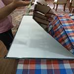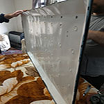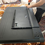 دو روز قبل آقای از شهرک اندیشه فاز 3 با دفتر نمایندگی تی سی ال در شهریار تماس حاصل کردند از بابت اینکه یک دستگاه تلویزیون تی سی ال به مدل LED55E5800 از تولیدات شرکت شهاب دارند که گارانتی شهاب آن پایان یافته است . الان ایراد LED55E5800 به این صورت است که دستگاه روشن می شود اما تصویر ندارد NO VIDEO ولی صدا برنامه ها پخش می شود AUDIO ON . با توجه به سایز 55 اینچ این دستگاه LED55E5800 و مشکلات جابجایی و منزل ایشان که در خیابان شهرداری شهرک اندیشه و طبقه چهارم و بدون آسانسور بود ، با هماهنگی لازم و کسب اجازه دو تکنسین با تجربه تعمیرات جهت تعویض بکلایت LED55E5800 به منزل ایشان اعزام شدند . از میز ناهار خوری ایشان جهت تامین محل مناسب برای باز کردن پنل دستگاه استفاه شد . فریم این دستگاه در قسمت بالا فقط با خار متصل است و در قسمت پایین تعدادی پیچ دارد . قاب و فریم جلو را باز کردیم و چسب های پنل را با کمک ابزار مخصوص پاک و پنل را با کمک مستحکم کننده برداشتیم و به محل امنی انتقال دادیم . بکلایت این مدل از 10 شاخه عمودی که روی هر شاخه 5 عدد ال ای دی LED نصب است تشکیل شده است . بکلایت با کمک دو نوار افقی چسب پارچه ای و از یک سمت با کمک یک پیچ بسته شده است . که البته ما بعد از تعویض پشت آلمینیوم شاخه ها از چسب نواری سیلیکون نیم سانتی جهت افزایش سهولت انتقال گرمای تولیدی بکلایت استفاده کردیم . تصاویر در جدول بعدی پروسه تعویض بکلایت را نمایش می دهد .