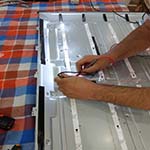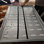 بعد از پروگرام مجدد و نصب آیسی فلش روی مین برد ، ایراد برطرف گردید و دستگاه مجدد به منزل مشتری در کرج / مهر ویلا منتقل گردید.یکی از تماس هایی که از منطقه اسلامشهر تهران از بابت خرابی یک دستگاه تلویزیون LED برند TCL به مدل 43D2900 در یافت کردیم ، و مشتری توضیح دادند تلویزیون روشن می شود و نور تصویر کم و زیاد می شود و احساس می شود لامپ های پشت در حال سوختن است . از مشتری خواستیم باهماهنگی لازم با راننده شرکت نسبت به انتقال دستگاه به دفتر نمایندگی اقدام کند . بعد از انتقال و یک تست سریع مشخص شد ایراد از سیستم بک لایت است و بعد از گرفتن تایید هزینه ها از مشتری از بابت تعویض دست کامل بکلایت ، نسبت به تعویض تمامی شاخه های بکلایت اقدام کردیم . در تی سی ال مدل 43D2900 از سه شاخه که روی هر کدام 8 عدد LED منشوری قرار گرفته است ساخته شده است . تصاویر جدول زیر پروسه تعویض بکلایت 43D2900 را نشان می دهد . برای تعویض بکلایت این مدل پس از باز کردن قاب پشت و سپس تمامی برد های پاور POWER و برد مین MAIN BOARD و برد تیکان T-CON و باز کردن اتصالات و کابل ها و روکش های نگه دانرده باید لیکوئید TFT پنل را با احتیاط جدا نمایید و بعد دیفیوزر ها را با حفظ جهت و سمت کنار گذاشته تا بتوانید به بک لایت 43D2900 دسترسی داشته باشید.