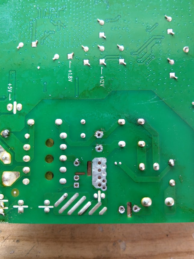 اینکه برد مین و پاور مشترک است اصلا جای نگرانی و پیچیدگی ندارد.دقت کنید روی بدنه برد - قسمتی را با خطی ذخیم جدا کرده اند ، اگر خط را نمیبینید ، احتمالا زیر برد باشد ، برد را باز کنید و زیر آن را چک کنید. قسمتی که با خط ذخیم جدا شده است میشود قسمت پاور . عیب یابی این مدل گیرنده دیجیتال یکم سخت تر میشود،شما باید ولتاژ گیری را از روی پایه های قطعات الکترونیکی مانند دیود و یا خازن انجام دهید.باید به دقت مسیر های مسی روی برد را تعقیب کنید ، پیشنهاد میکنم از ابتدا که برق وارد برد میشود مسیر را ردیابی کنید معمولا ابتدا فیوز و بعد جرقه گیر بعد پل دیود یکسو کننده بعد خازن صافی و بعد خازن های تثبیت ولتاژ و مقاومت ها هستند. تصویر زیر پشت برد پاور گیرنده دیجیتال را نشان میدهد.