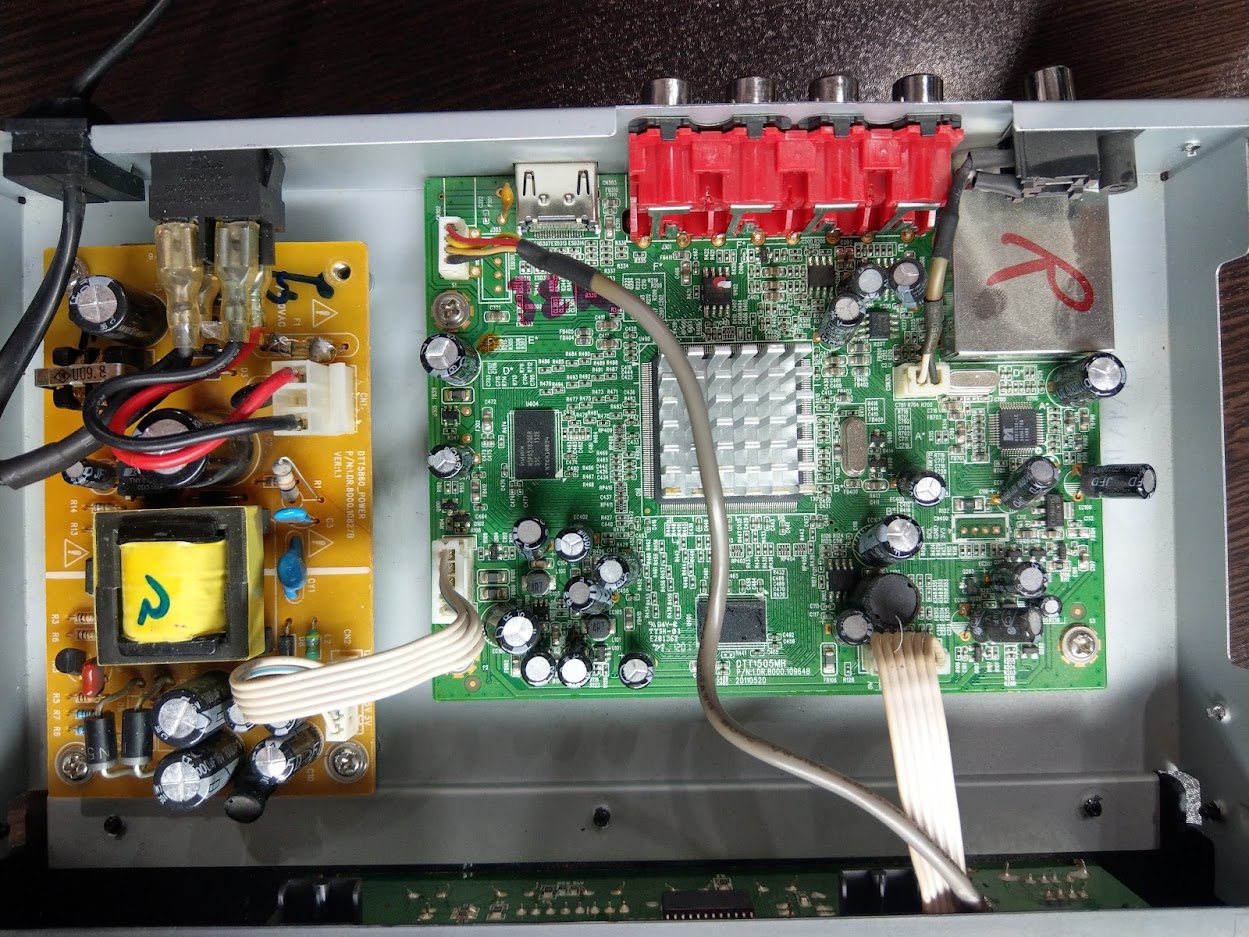 تصویر زیر از برد اصلی و تغذیه مشترک گیرنده XVISION XDVB-205 گرفته شده است.