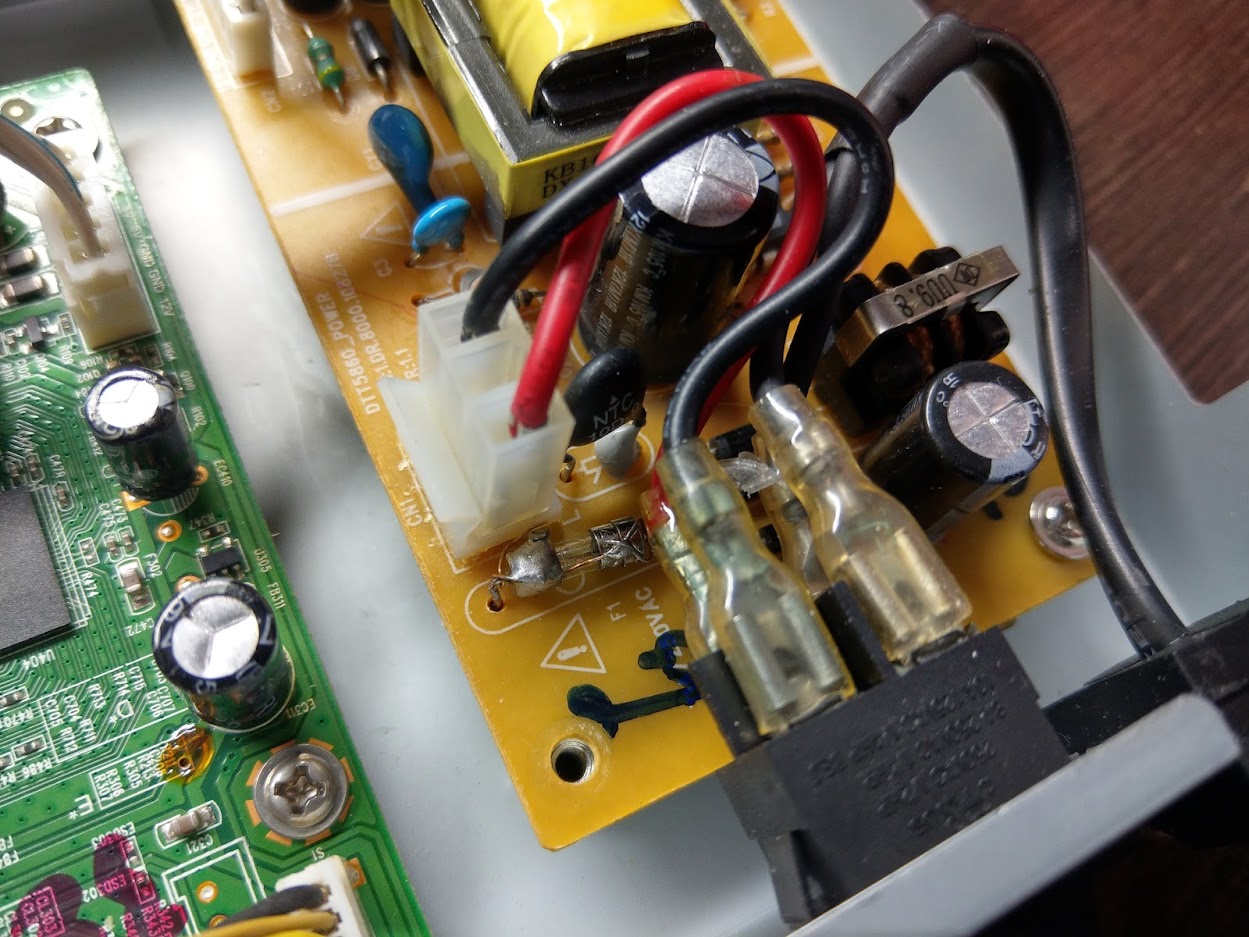 حالت 2:فیوز سوخته است(پاور بر اثر نوسان برق سوخته و احتمال زیاد قطعات دیگری نیز خراب هستند)