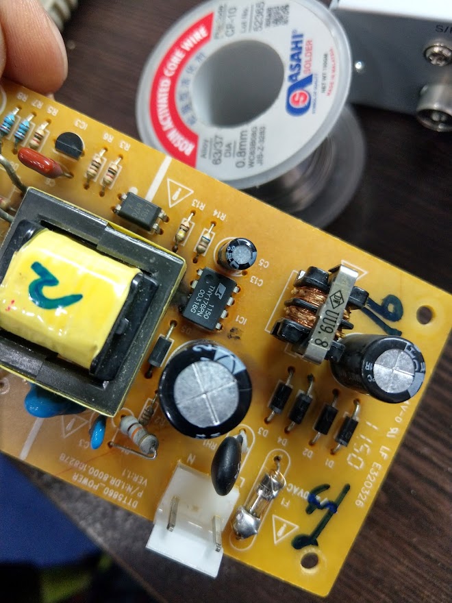 ایراد رایج سوختن همزمان فیوز و خازن صافی و آی سی 8 پایه روی برد تغذیه است.